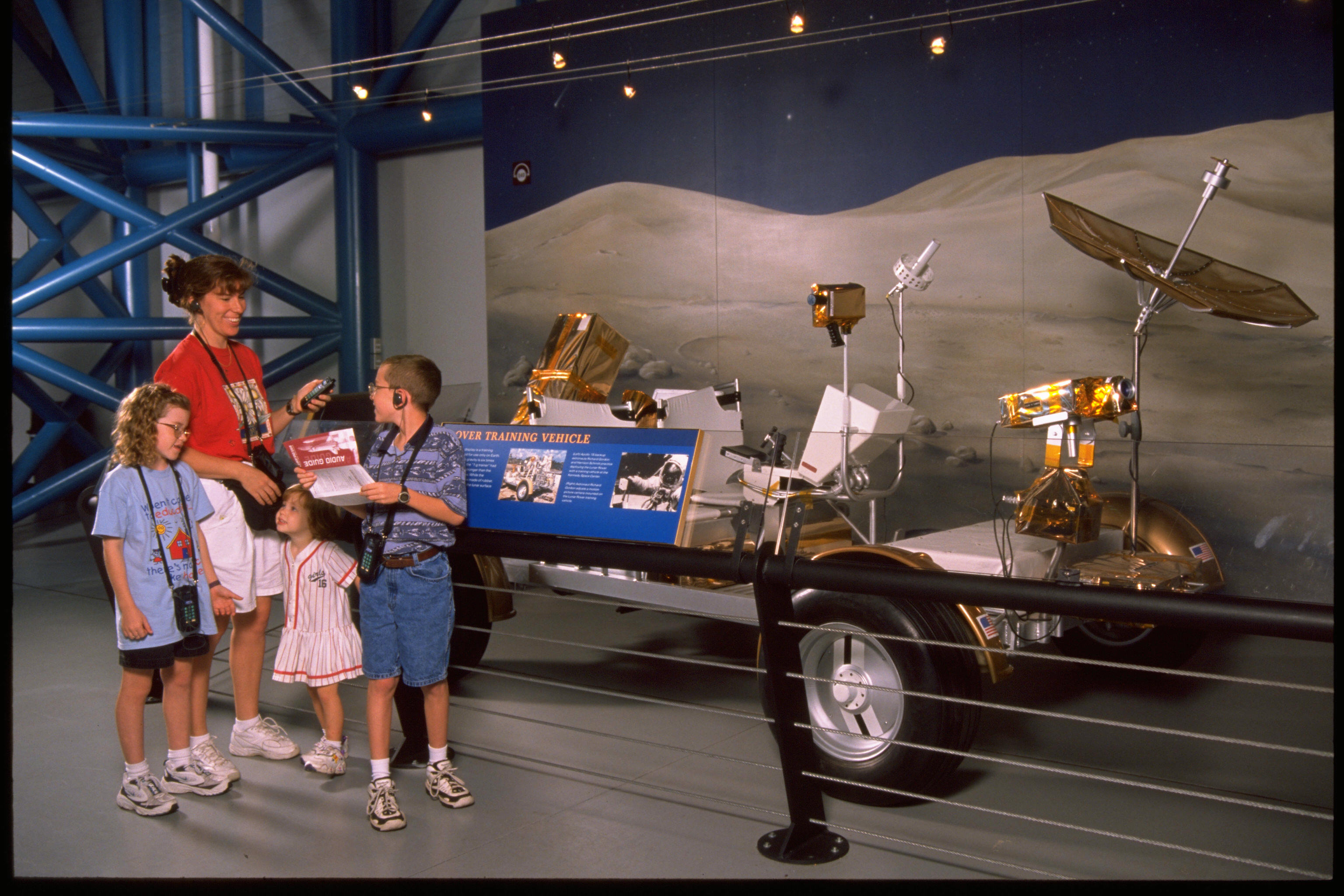 family learning about Lunar Rover Vehicle at Apollo/Saturn V